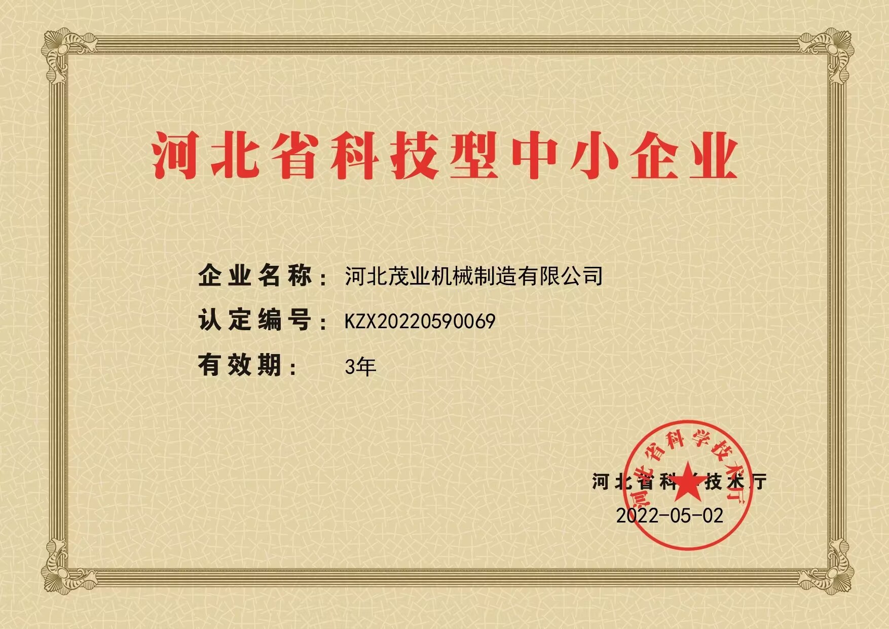 近日,河北茂業(yè)機(jī)械制造有限公司獲得由河北省科學(xué)技術(shù)廳授予的“科技型中小企業(yè)”榮譽(yù)稱號(hào),這是公司在提高企業(yè)自主創(chuàng)新能力、走創(chuàng)新型持續(xù)發(fā)展道路上取得的又一喜人成果,這無疑是我省對(duì)高新技術(shù)產(chǎn)品、科技服務(wù)公司的最高榮譽(yù);是對(duì)河北茂業(yè)公司知識(shí)產(chǎn)權(quán)、專有技術(shù)、高新科技的充分肯定。